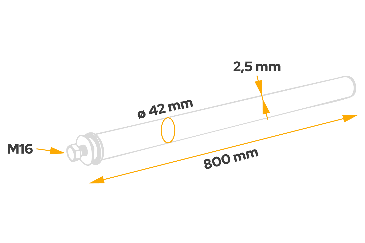 Rovná trubka pro montáž blatníku DOMAR DK8022, průměr konzoly 42 mm