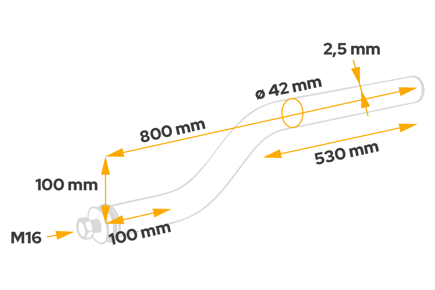 Díky ohnuté konstrukci zajišťuje trubka optimální uchycení pro různé typy blatníků a konfigurací náprav, což umožňuje stabilní a bezpečnou montáž. Jedná se o praktické a univerzální řešení pro montáž blatníků na přívěsy, návěsy, plošinové přívěsy a zemědělské a stavební stroje, kde je klíčová odolnost, spolehlivost a snadná instalace.