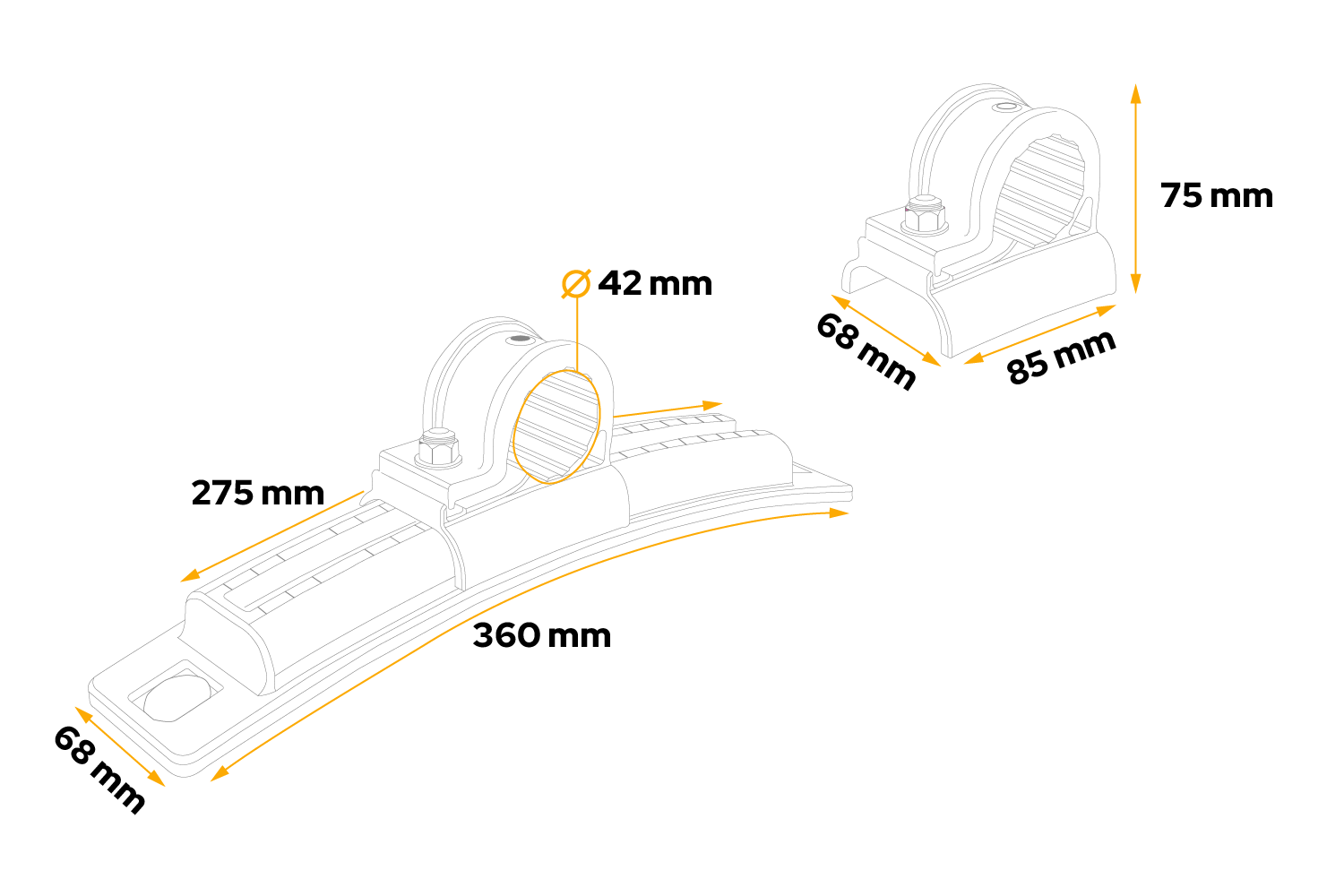 Nastavitelný montážní držák DK8145 od společnosti DOMAR je solidní a funkční řešení pro stabilní montáž blatníků v užitkových vozidlech, jako jsou přívěsy, návěsy, odtahovky nebo zemědělské stroje. Držák má délku 360 mm, šířku 68 mm a objímku o průměru 42 mm , díky čemuž dokonale pasuje na standardní konstrukční trubky používané v rámech vozidel.