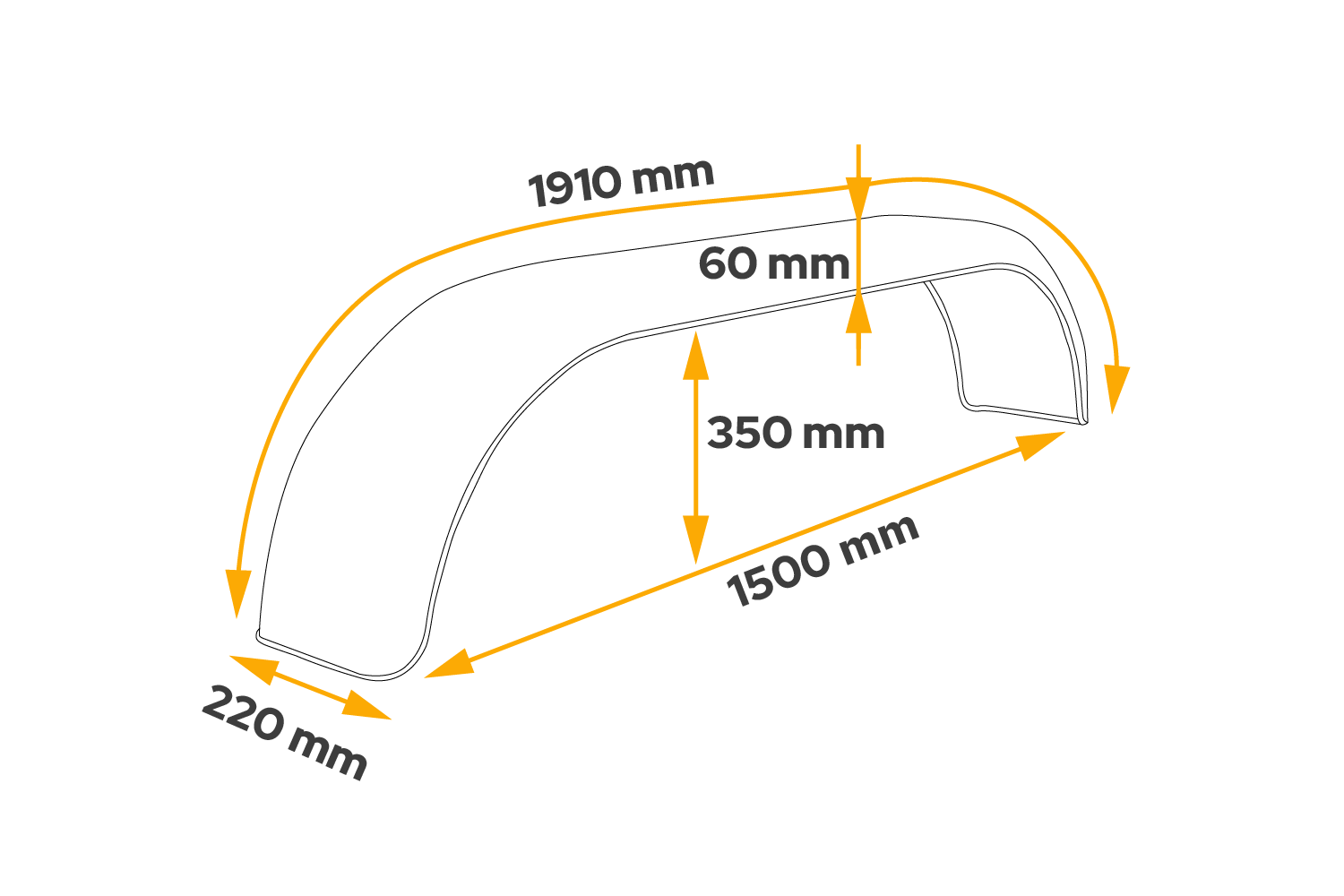 Tandemový blatník pro přívěs 13-14" DOMAR D29250, plochý podběh kola 1500/220 mm