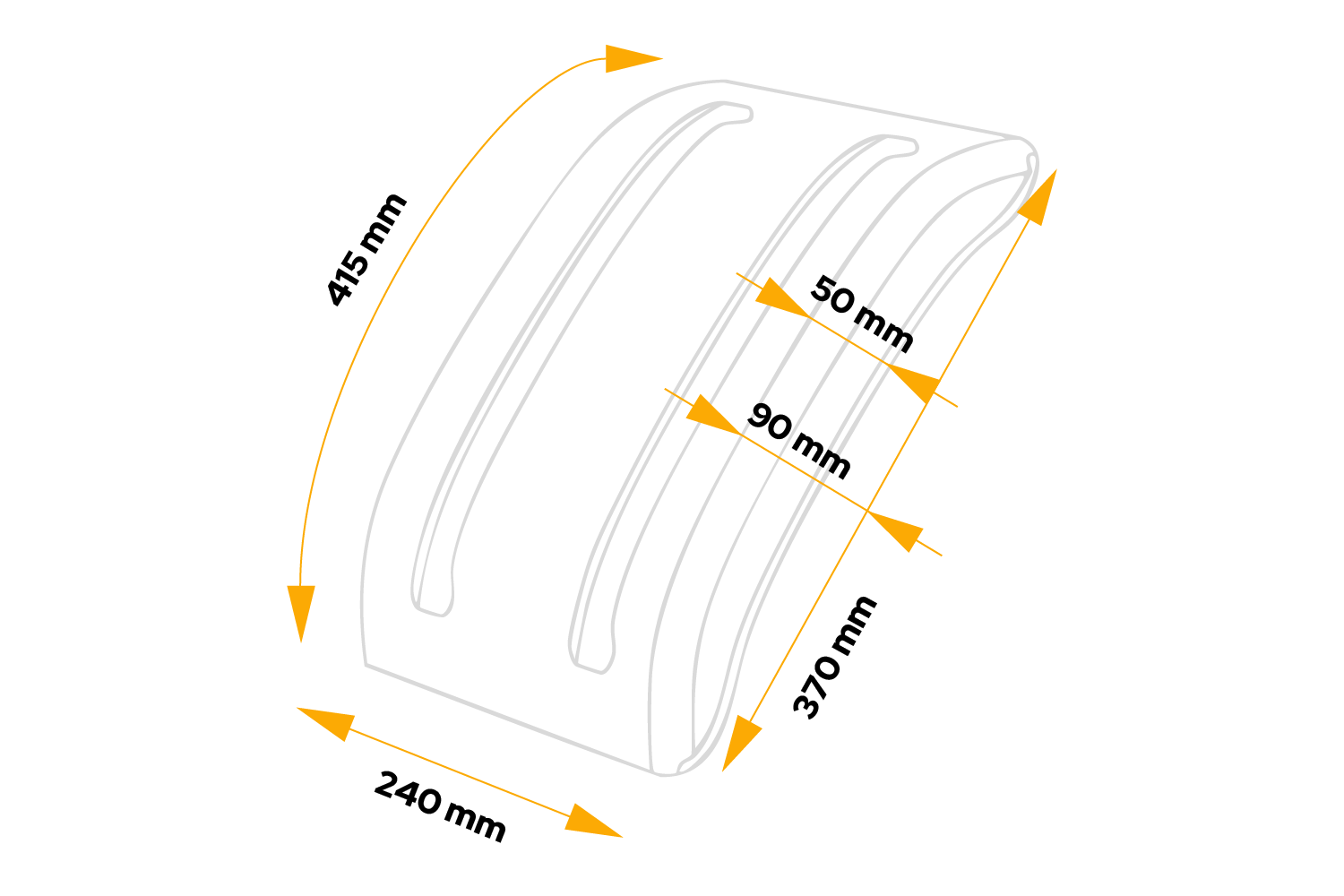 Blatník D10224 od značky DOMAR je kompaktní a pevný prvek určený k ochraně kol užitkových přívěsů, návěsů, zemědělských a stavebních strojů a dalších vozidel provozovaných v náročných podmínkách . Díky svým rozměrům – délka 370 mm, šířka 240 mm a výška 90 mm – je ideální pro místa, kde je potřeba účinná ochrana před vodou, blátem a kameny stříkajícími zpod kol a zároveň je důležitá úspora místa. Nemá tovární montážní otvory , což umožňuje uživateli volně přizpůsobit montážní body konkrétní konstrukci vozidla .