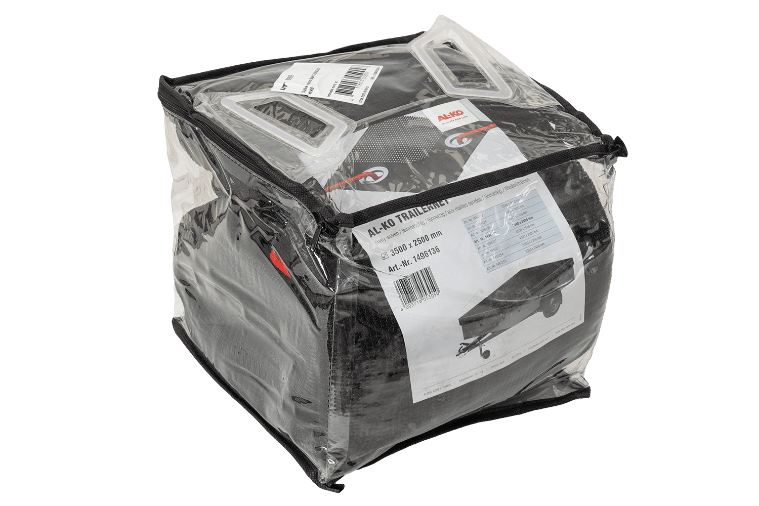 - Síť AL-KO 1496136 o rozměrech 2500×3500 mm s jemnými oky, zajišťuje sypké a objemné náklady na přívěsu. Vyrobeno z odolného materiálu, odolného vůči povětrnostním podmínkám, zajišťuje spolehlivé upevnění během přepravy.