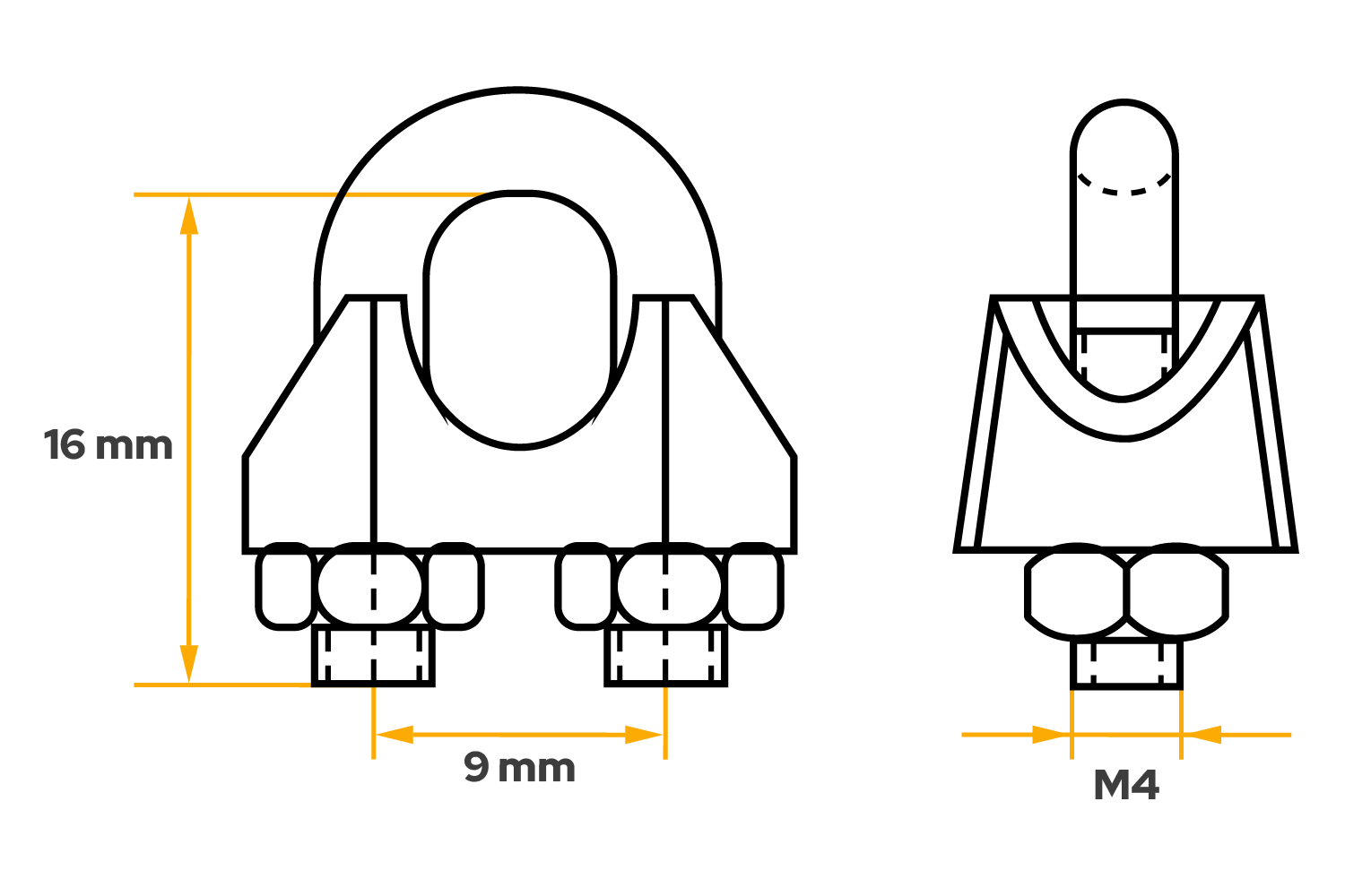 Kabelová svorka ZL.3 od firmy DROMET je praktický a odolný montážní prvek určený pro upínání ocelových lan o průměru 3 mm . Je vybavena závitem M4 , je vysoká 20 mm a má rozteč otvorů v osách 9 mm, což zajišťuje kompaktní rozměry a snadné přizpůsobení různým upevňovacím systémům. Tělo svorky je vyrobeno z odolné litiny, zatímco třmen je vyroben z pozinkované oceli, což zaručuje vysokou odolnost proti korozi a dlouhou životnost i v náročných vnějších podmínkách .
