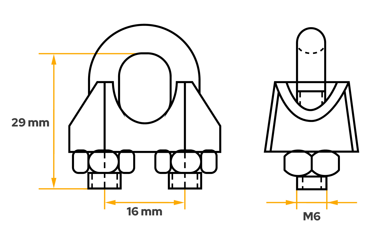 Kabelová svorka ZL.8 od firmy DROMET je praktický a odolný montážní prvek určený pro upínání ocelových lan o průměru 8 mm . Je vybavena závitem M6 , je vysoká 34 mm a má rozteč otvorů v osách 16 mm, což zajišťuje kompaktní rozměry a snadné přizpůsobení různým upevňovacím systémům. Tělo svorky je vyrobeno z odolné litiny, zatímco třmen je vyroben z pozinkované oceli, což zaručuje vysokou odolnost proti korozi a dlouhou životnost i v náročných vnějších podmínkách .