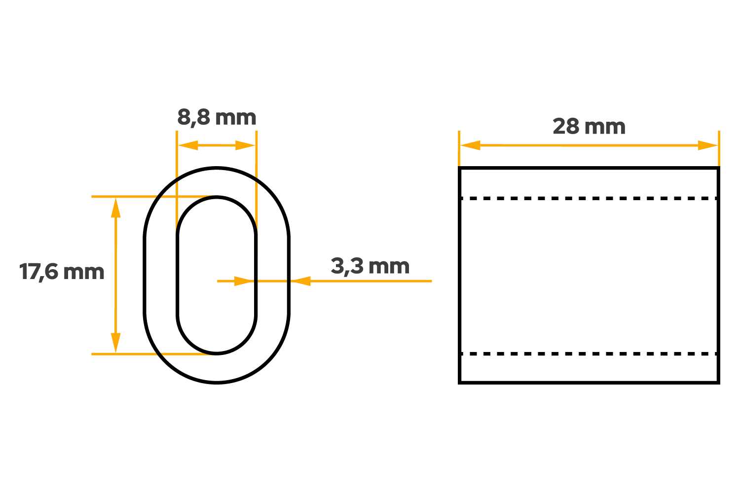 Hliníková spojka ZLA.8 od společnosti DROMET je určena pro upínání ocelových lan o průměru 8 mm . Produkt má vnitřní rozměry objímky 8,8 × 17,6 mm a celkovou délku 28 mm , což umožňuje přesné a trvanlivé umístění lana. Používá se hlavně při výrobě lanových vázacích prostředků a umožňuje efektivní vytváření smyček a spojů v upevňovacích systémech.