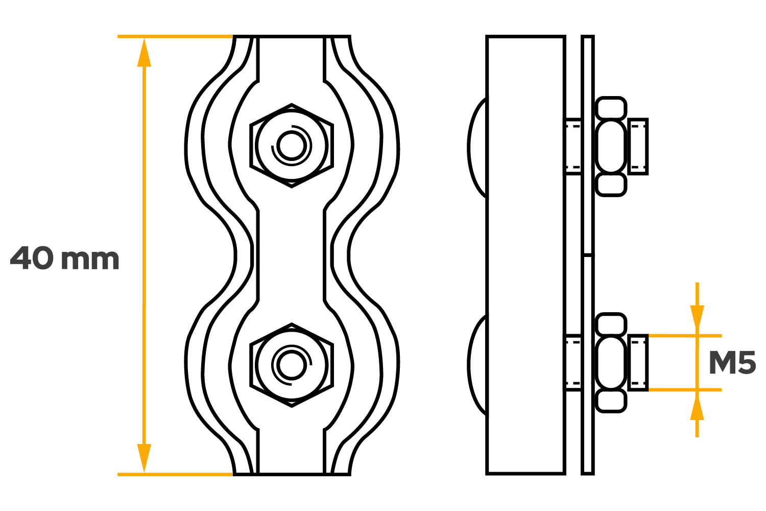 Lanová svorka ZLS.4 od firmy DROMET je dvojitá (sériová) sedlová svorka určená pro spojování, upevňování a upínání ocelových lan o průměru 4 mm . Je vybavena závitem M5 a celkovou délkou 40 mm , což umožňuje stabilní a rovnoměrné uchycení lana ve dvou bodech, což zvyšuje odolnost a jistotu upevnění. Díky sedlové konstrukci svorka zajišťuje rychlou montáž a dobré uchycení v systémech vyžadujících větší přítlačnou plochu.