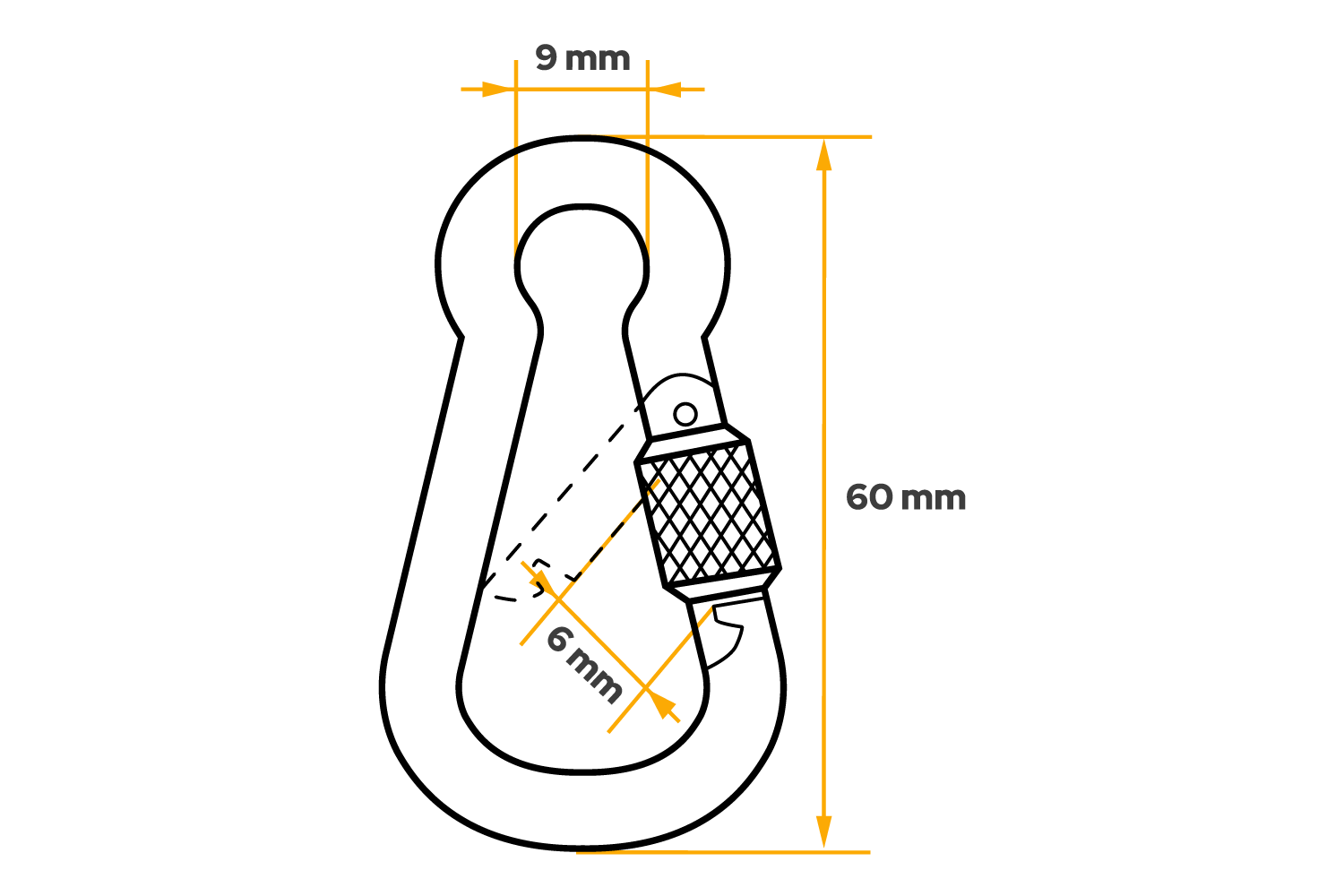 Karabina s pojistkou pro lana DROMET KSZ.6.60 hasičská karabina 6x60mm