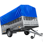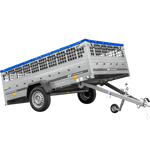 Přívěs za auto na pružinách 264x150 UNITRAILER GARDEN 265/R KIPP s pletivovými bočnicemi, rámem H-800 a modrým krytem