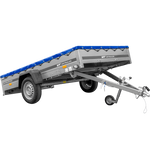 Přívěs za auto na pružinách 230x125 UNITRAILER GARDEN 230/R KIPP s bočnicemi BIS, rámem H-0 a modrým krytem